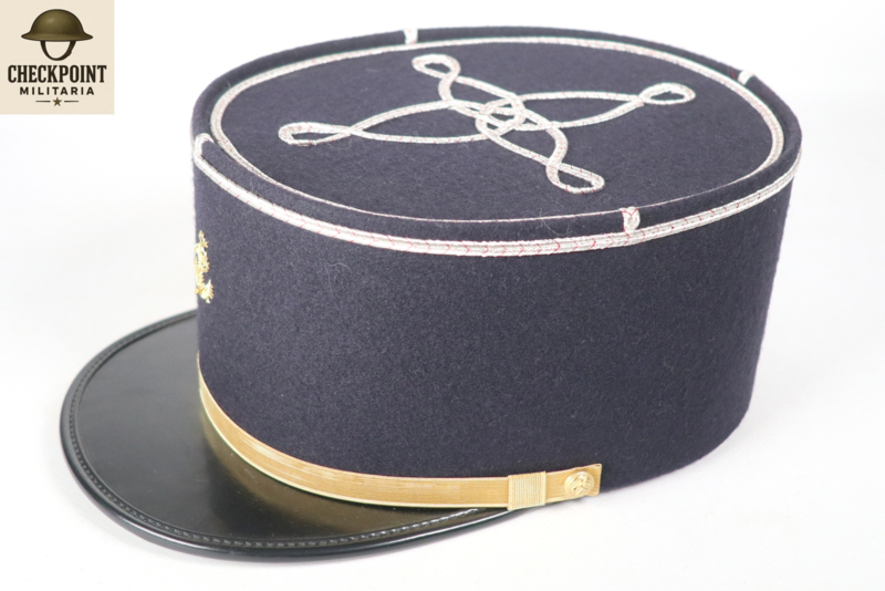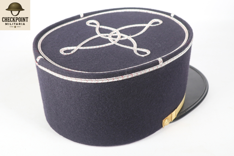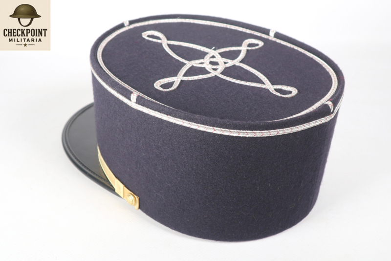 - Kleuren: De basis van de kepi is donkerblauw (bijna zwart) met een rode binnenkant(turban).