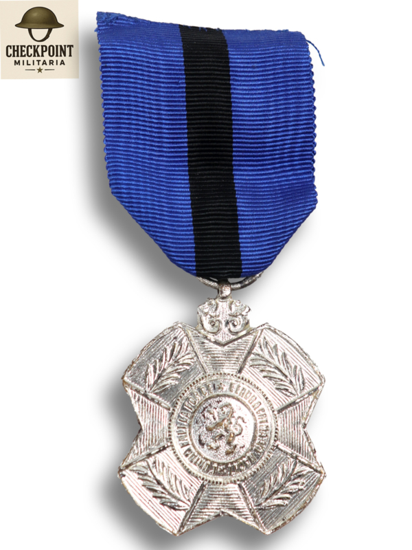 - Verschijningsvorm: De medaille is vervaardigd uit zilver (of verzilverd metaal) en heeft de vorm van een kruis met een kroon erboven.