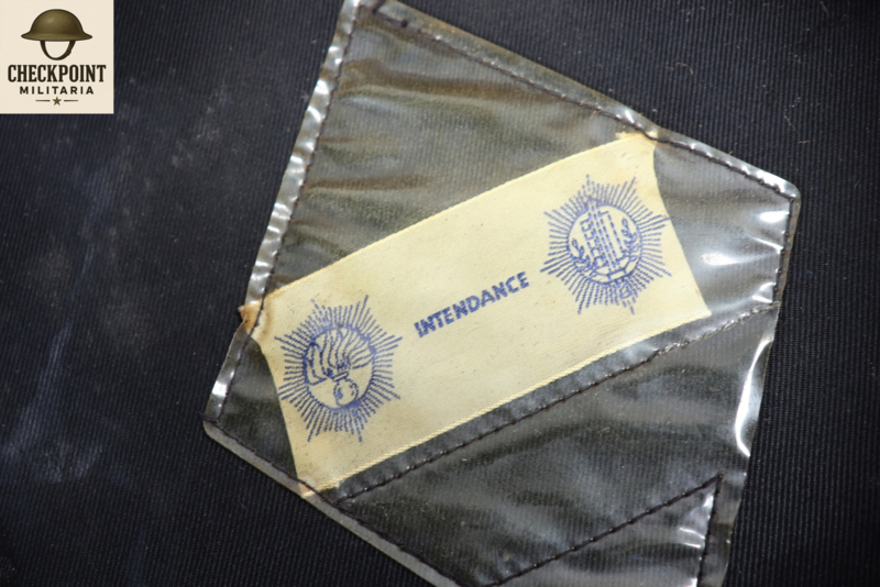 - Stormband: Boven de klep zat een zwarte stormband, bevestigd met twee kleine knopen.