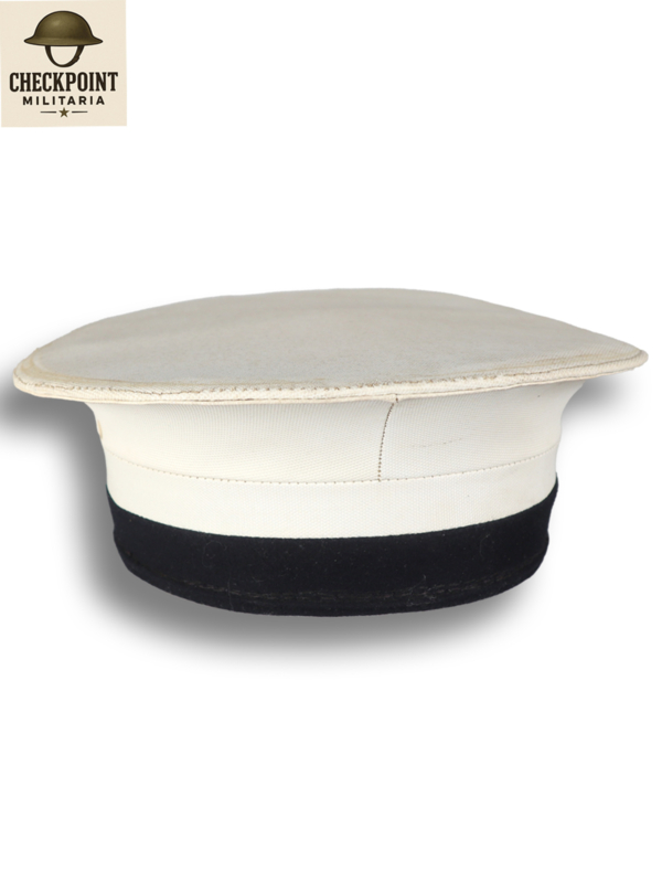The British naval sailors' "pork pie" hat is the common nickname for the official Royal Navy Ratings Cap (also known as the Class II hat or "sea scout" hat), a soft, visorless cap that is part of the standard uniform. It features a flat, round crown with a slight indentation that resembles the traditional British pastry, hence the nickname.