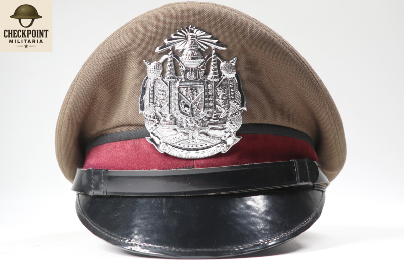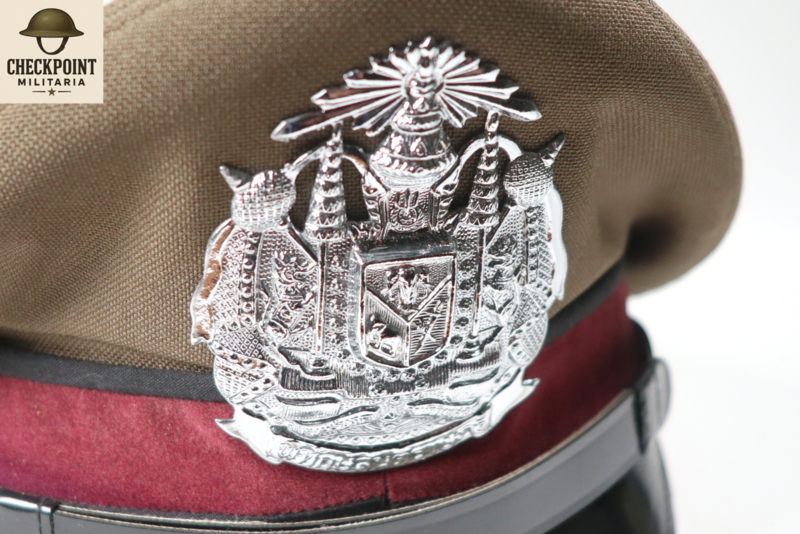 De Thaise politie draagt bruine (khaki-kleurige) uniformen en petten, maar de rode rand op de pet is een specifiek kenmerk dat de rang van de officier aangeeft. Deze petten maken deel uit van het standaard uniform van de Koninklijke Thaise Politie (Royal Thai Police - RTP).