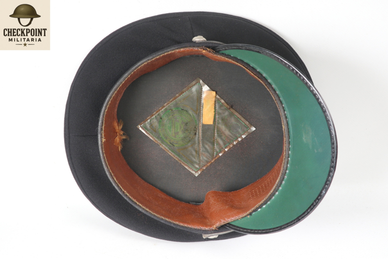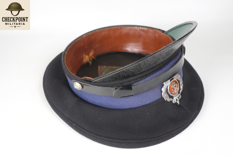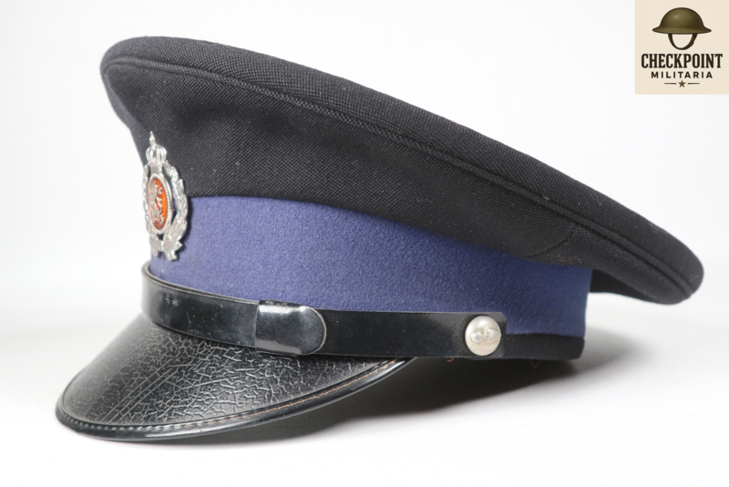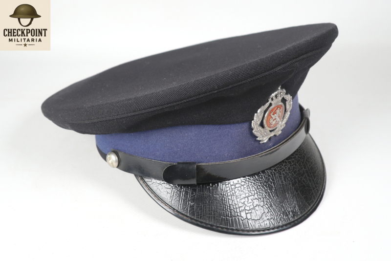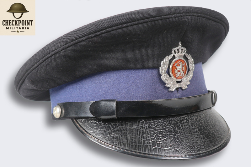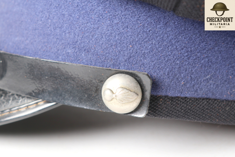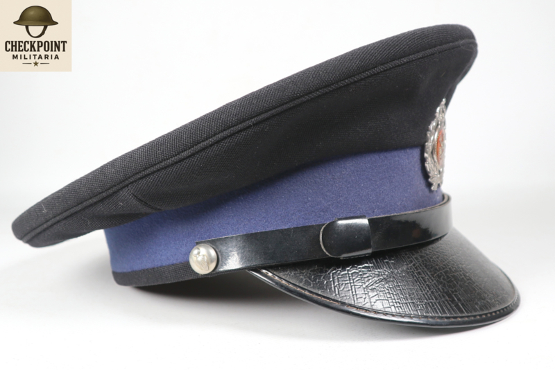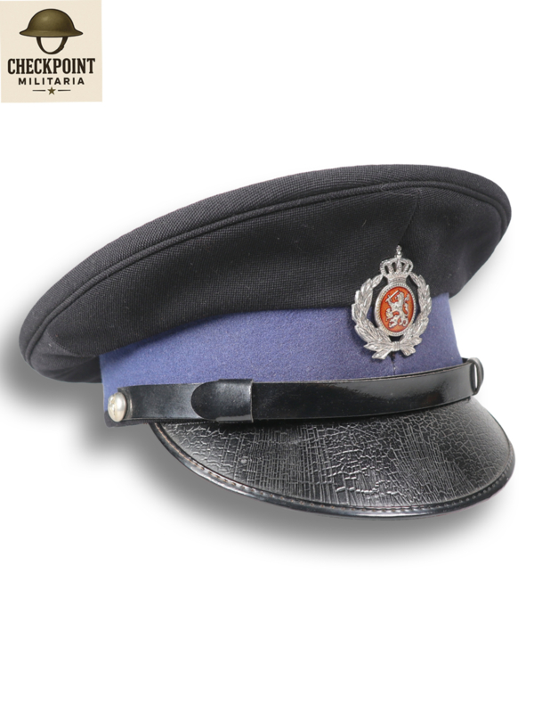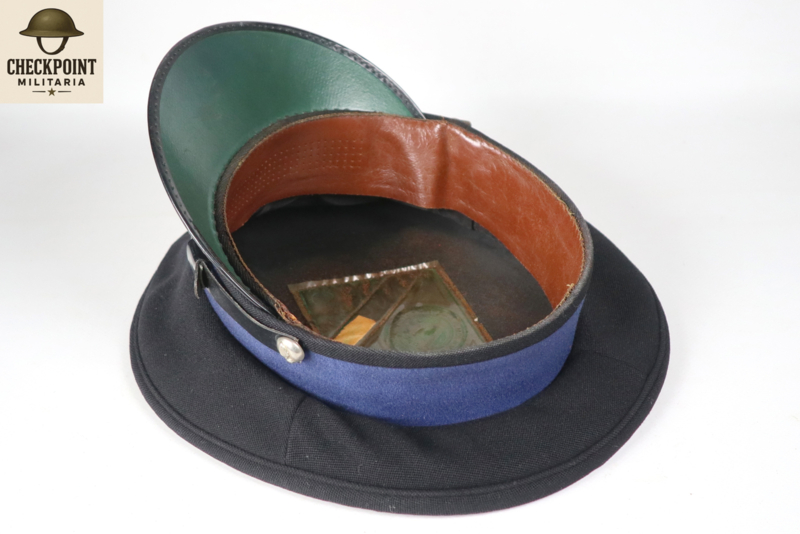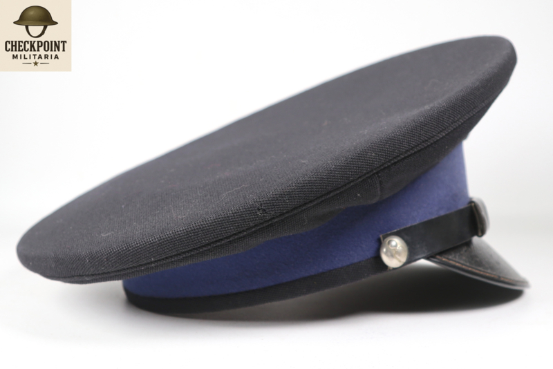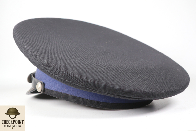 - Manschappen & Korporaals: Een eenvoudige donkerblauwe pet met een zwarte stormband en een zilverkleurig embleem.