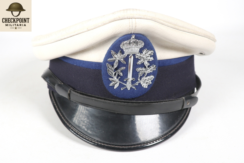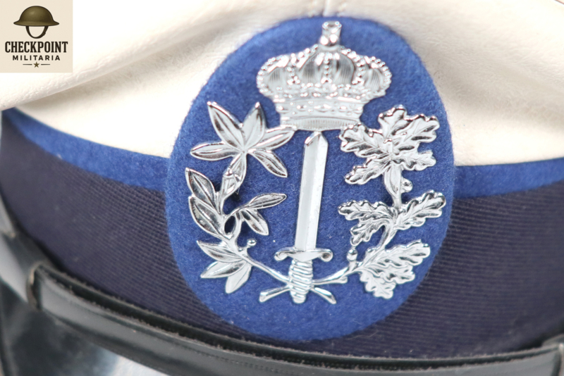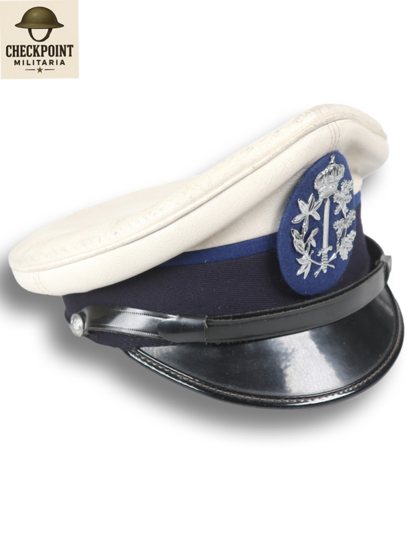 - Gemeentepolitie: Droeg op de witte pet vaak het metalen gemeentewapen of een universeel politie-embleem (zilverkleur voor agenten, goudkleur voor officieren).