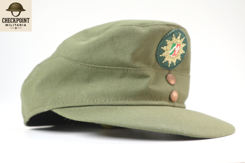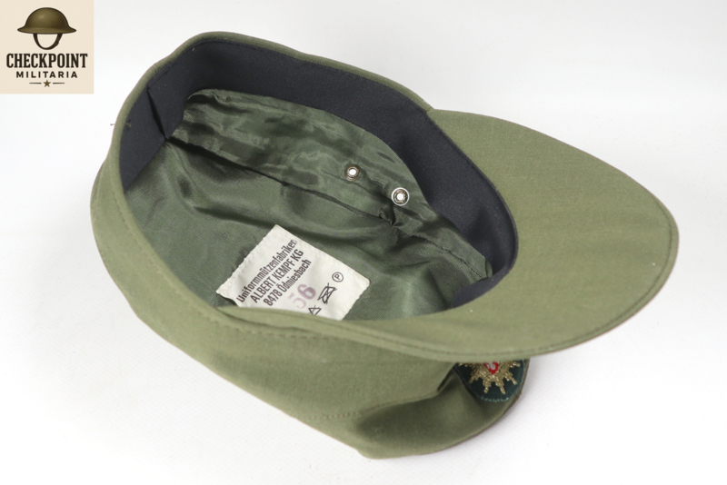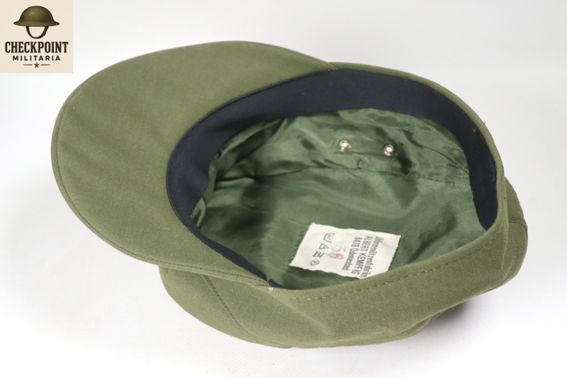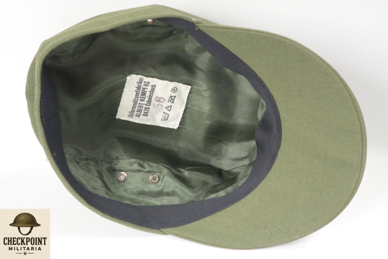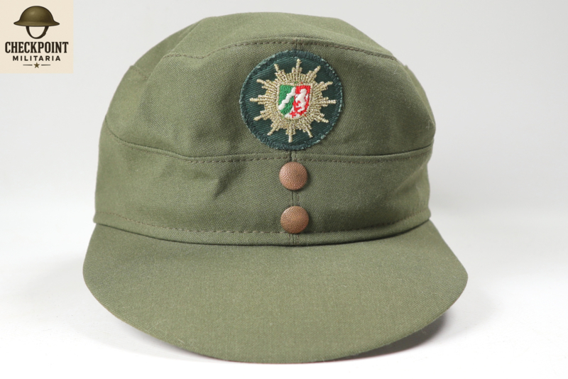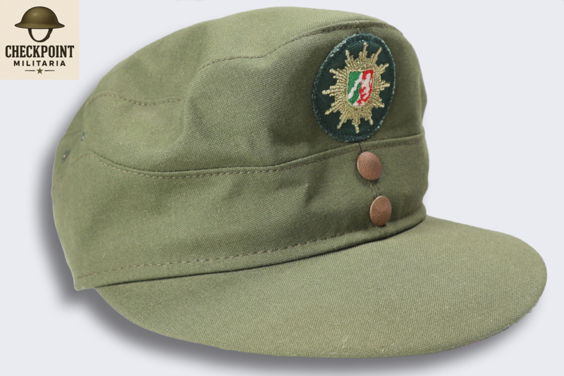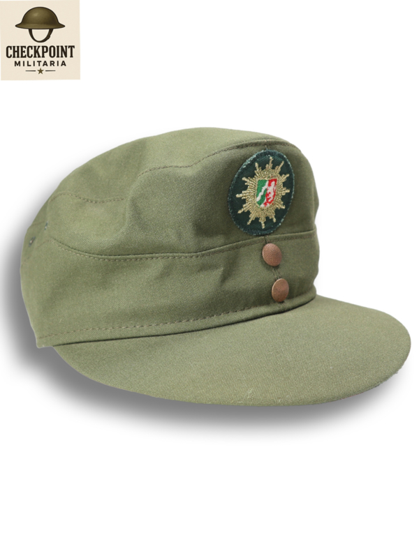 - Kleur en Materiaal: De mutsen waren gemaakt van een stevige katoenen stof in de typische politiegroene kleur van de Duitse deelstaatpolitie.