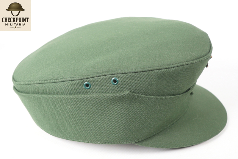 - Ontwerp: Herkenbaar aan de hoge kroon, korte klep en neerklapbare oorkleppen die aan de voorzijde met twee knopen worden vastgezet.