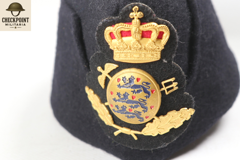 De Deense kwartiermuts (side cap of garrison cap) voor de politie is een specifiek verzamelobject dat doorgaans wordt gekenmerkt door zijn donkerblauwe kleur en officiële insignes. In tegenstelling tot de grijze varianten van de landmacht, is deze versie specifiek bedoeld voor politiefunctionarissen of aanverwante diensten.