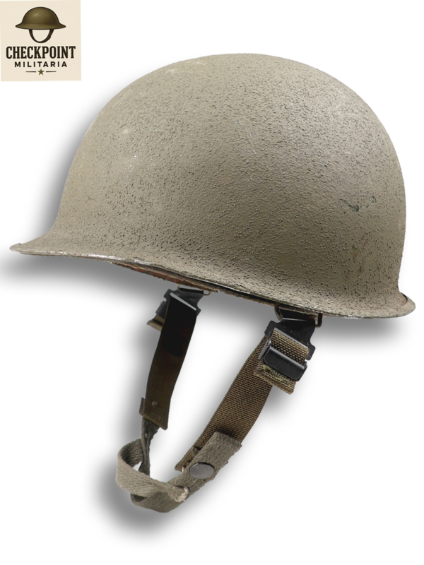 - Kleur en Textuur: De helm was standaard olijfgroen (Olive Drab) gespoten, vaak met een ruwe textuur door toevoeging van kurk of zand om reflectie tegen te gaan.