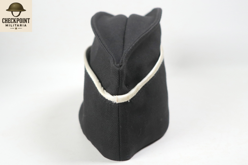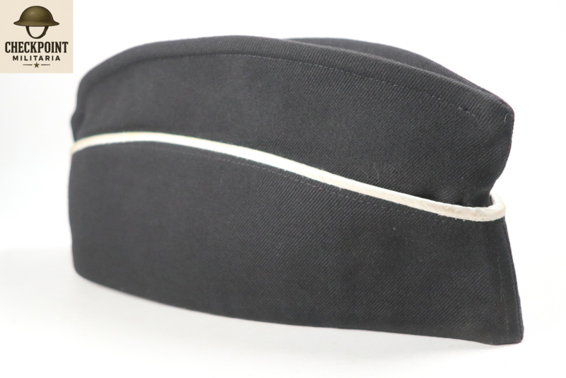- Cap Color: The base of the cap is usually khaki/olive green (historical) or black (post-war). The white piping runs along the top edge and the front of the cap.