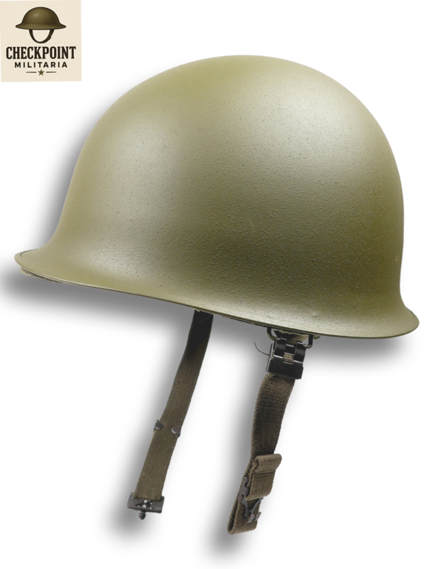 The M53 helmet stamped with VDN is a variant of the post-war troop helmet based on the American M1 design. The "VDN" stamp stands for the manufacturer Vereinigte Deutsche Nickelwerke, a German company that supplied helmets to various European armed forces.
