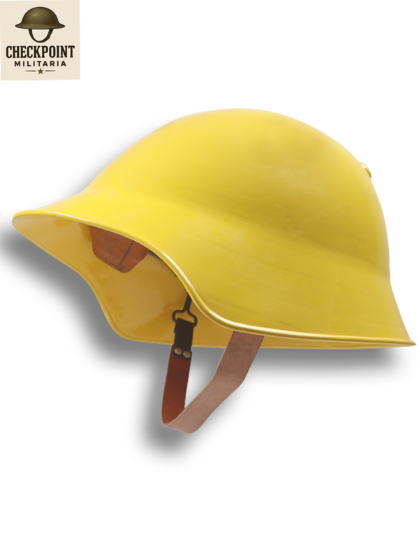 - Origin & Repurposing: These helmets were often recycled from old army stocks. For use by Civil Defense, they were fitted with a distinctive yellow paint finish (often fluorescent yellow) and sometimes a renewed liner.