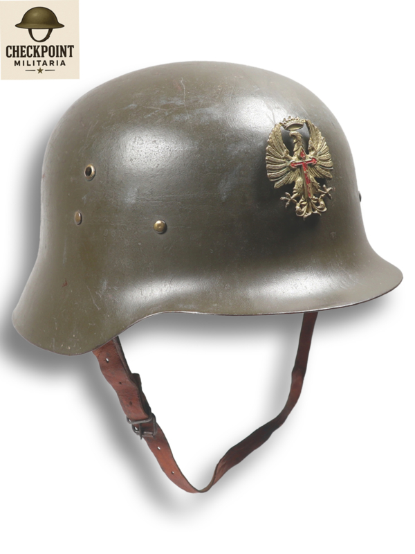 - Acier et bord : Ce casque est fabriqué en acier plus fin et de moindre qualité que ses homologues allemands, ce qui le rend plus léger mais aussi plus sensible aux chocs. Le bord du casque est coupé droit (« à cru ») et non replié comme sur les premiers modèles allemands.