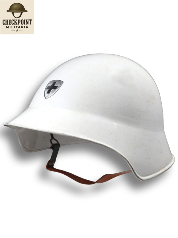 Le casque suisse blanc M18/63 est une variante du casque de combat classique en acier M18, spécifiquement distribué à la Protection civile (Luftschutz) et aux autres services d'urgence en Suisse. Alors que les versions militaires standard, après 1943, étaient noires anthracite avec une texture rugueuse, les casques destinés au secteur civil étaient souvent repeints en blanc ou en jaune vif pour une meilleure visibilité.